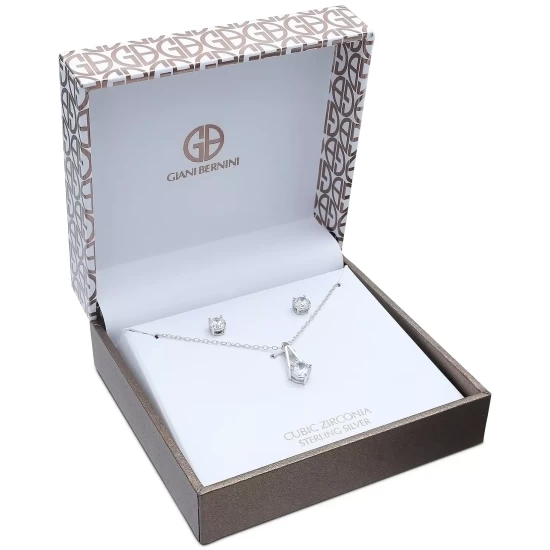 Be the epitome and grace and sparkle in this elegant cubic zirconia pendant necklace and coordinating stud earring jewelry set from Giani Bernini.