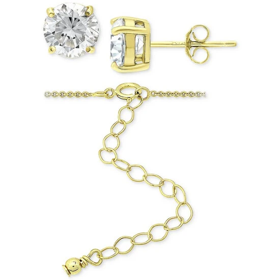 A classic look that’s always in style. This gorgeous set includes a solitaire cubic zirconia pendant necklace with matching stud earrings.
