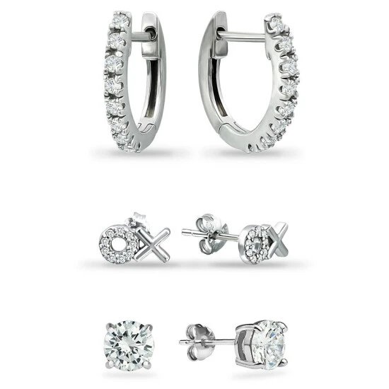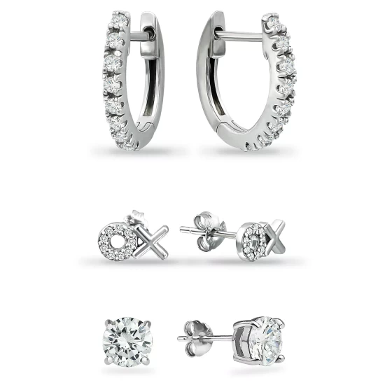 Sparkling hoops, dazzling solitaire studs and whimsical XO stud earrings make up this gorgeous cubic zirconia three piece earrings set from Giani Bernini.