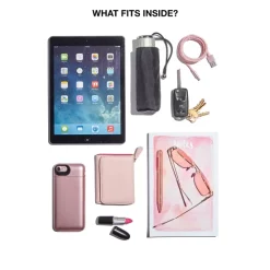 - 4-1/2″ handle; removeable, adjustable crossbody strap