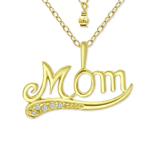 Simple and sweet, this Giani Bernini “Mom” pendant necklace features a cubic zirconia accent looks great alone or layered.