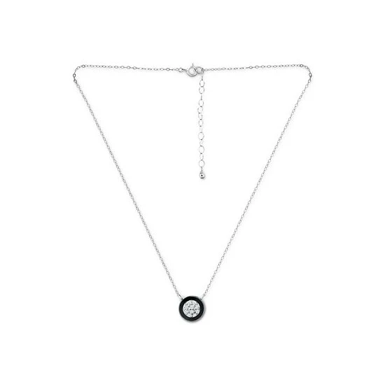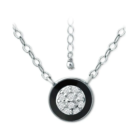 An enamel circle frames a cubic zirconia cluster in this chic circle pendant necklace from Giani Bernini.
