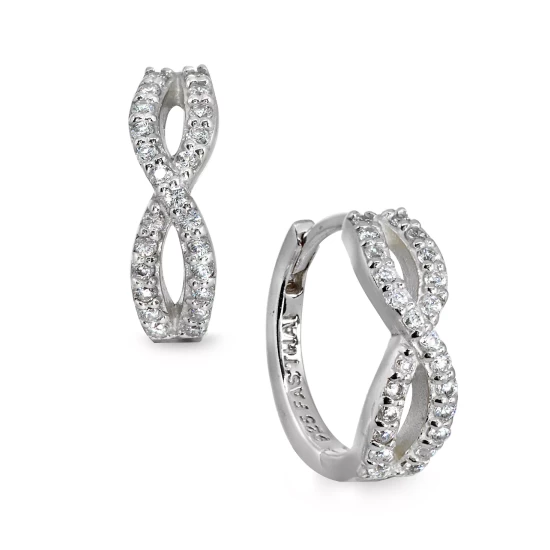 A pair of earrings you’ll love for infinity! This Cubic Zirconia Infinity huggie hoop earring in sterling silver is specially designed to hug your ear for a comfortable fit for everyday wear.