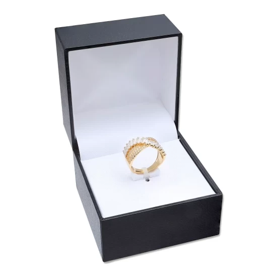 Pave the way for others with this stunning Baguette and Pave Triple Row Ring. With it’s crossover design you will definitely be a trend-setter