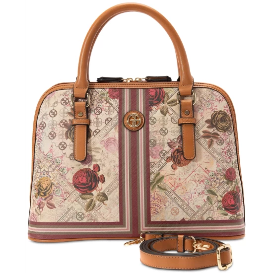 A timeless dome silhouette and elegant florals define the Floral Print Dome by Giani Bernini. Offering ample space with a double compartment interior, attach the crossbody strap to go handsfree for added convenience.