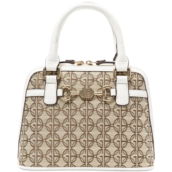 - Exterior features silver-tone hardware with 2 zip pockets and 1 front magnetic snap flap compartment with 3 slip pockets and 1 ID window