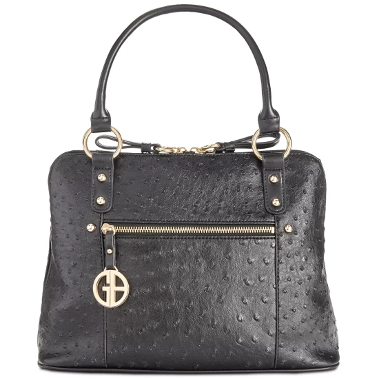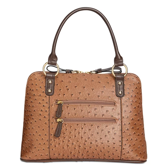 Plenty of zip pockets surround a Giani Bernini dome satchel elevated by ostrich-embossing for a classy look that carries in hand or on the shoulder.