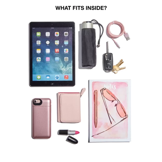 - Interior features center zip divider pocket, 1 zip pocket, 1 slip pocket and 1 key clasp holder